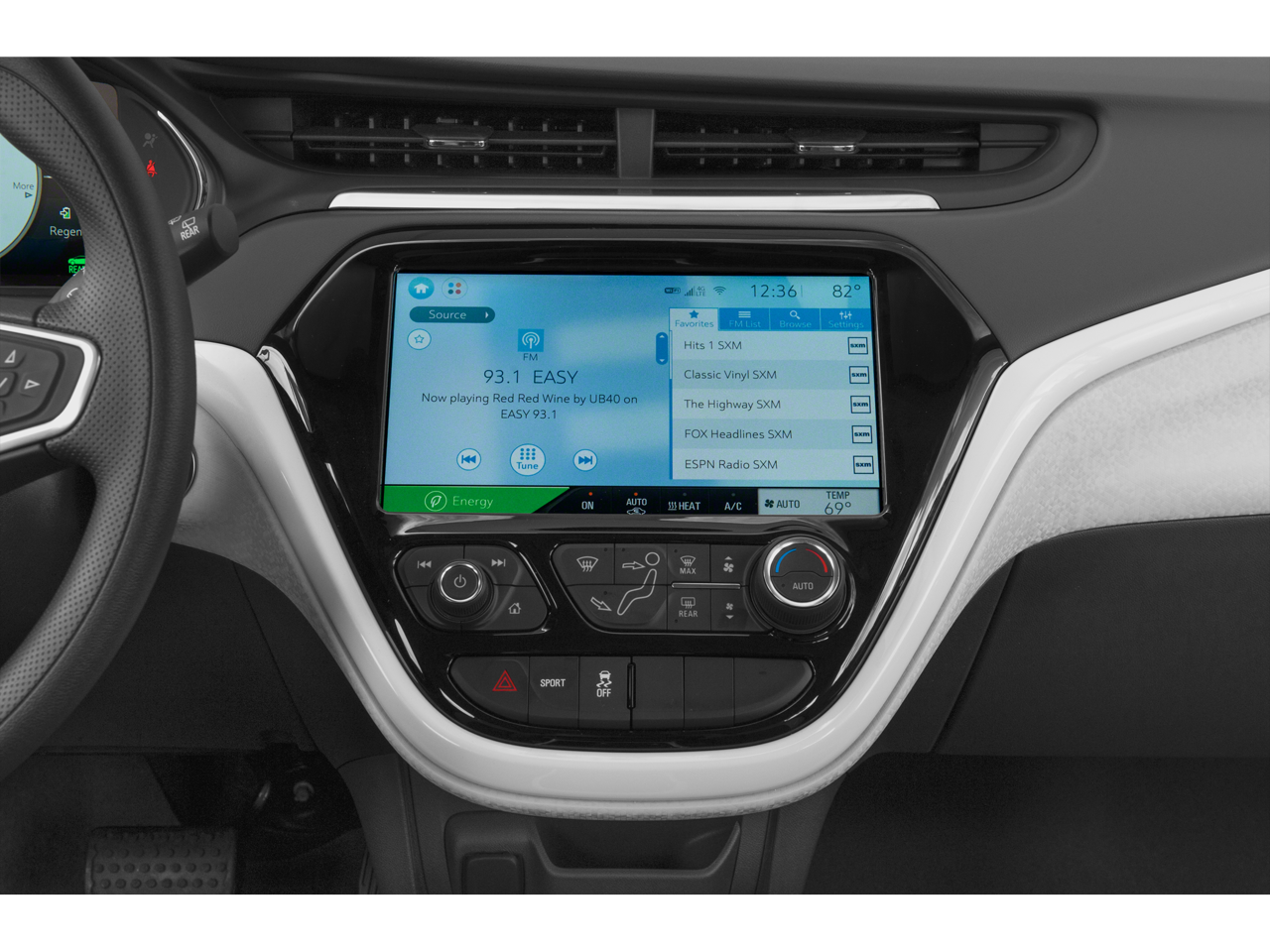 - Regenerative brakes: One-pedal regenerative brakes
